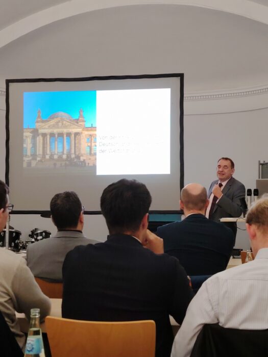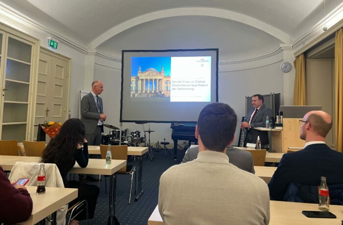Unter der Prämisse »Von der Krise zur Chance: Deutschlands neue Rolle in der Weltordnung« ging Prof. Lorz in seinem Vortrag der Frage nach, wie die Bundesrepublik Deutschland auf globale Krisen reagieren kann und welche Chancen sich daraus für die Position der Bundesrepublik in der internationalen Weltordnung ergeben.