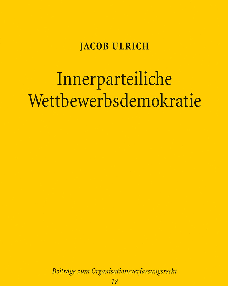 Am 17. September 2025 erschien die Dissertation unseres ehemaligen wissenschaftlichen Mitarbeiters Dr. Jacob Ulrich mit dem Titel »Innerparteiliche Wettbewerbsdemokratie: Eine rechtsökonomische Untersuchung der Parteiorganisation vor dem Hintergrund des Gebots innerparteilicher Demokratie aus Art. 21 Abs. 1 S. 3 GG«.