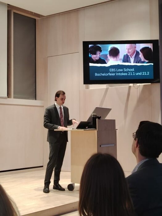 An important milestone for the 2021 intake: On October 23, 2025, the Bachelor of Laws (LL.B.) was ceremoniously awarded to the 2021 class of EBS Universität. This marks a significant step for the students on their way to the state examination and legal practice.
